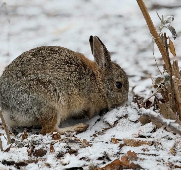 - Rabbits – Gnaw bark near the base of trees and shrubs under snow cover.
