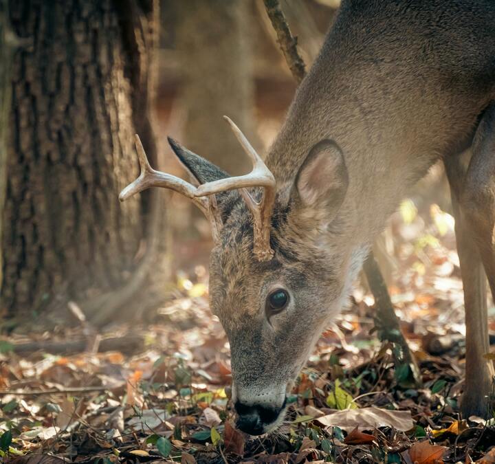 - Deer – Browse shrubs, evergreens, and rub antlers on young trees.